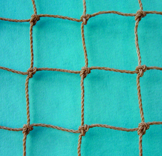 The knotted intersections provide added strength and stability, which is why this type of netting is often preferred for uses where high tensile strength and durability are required, such as in sports, fishing, and industrial settings.